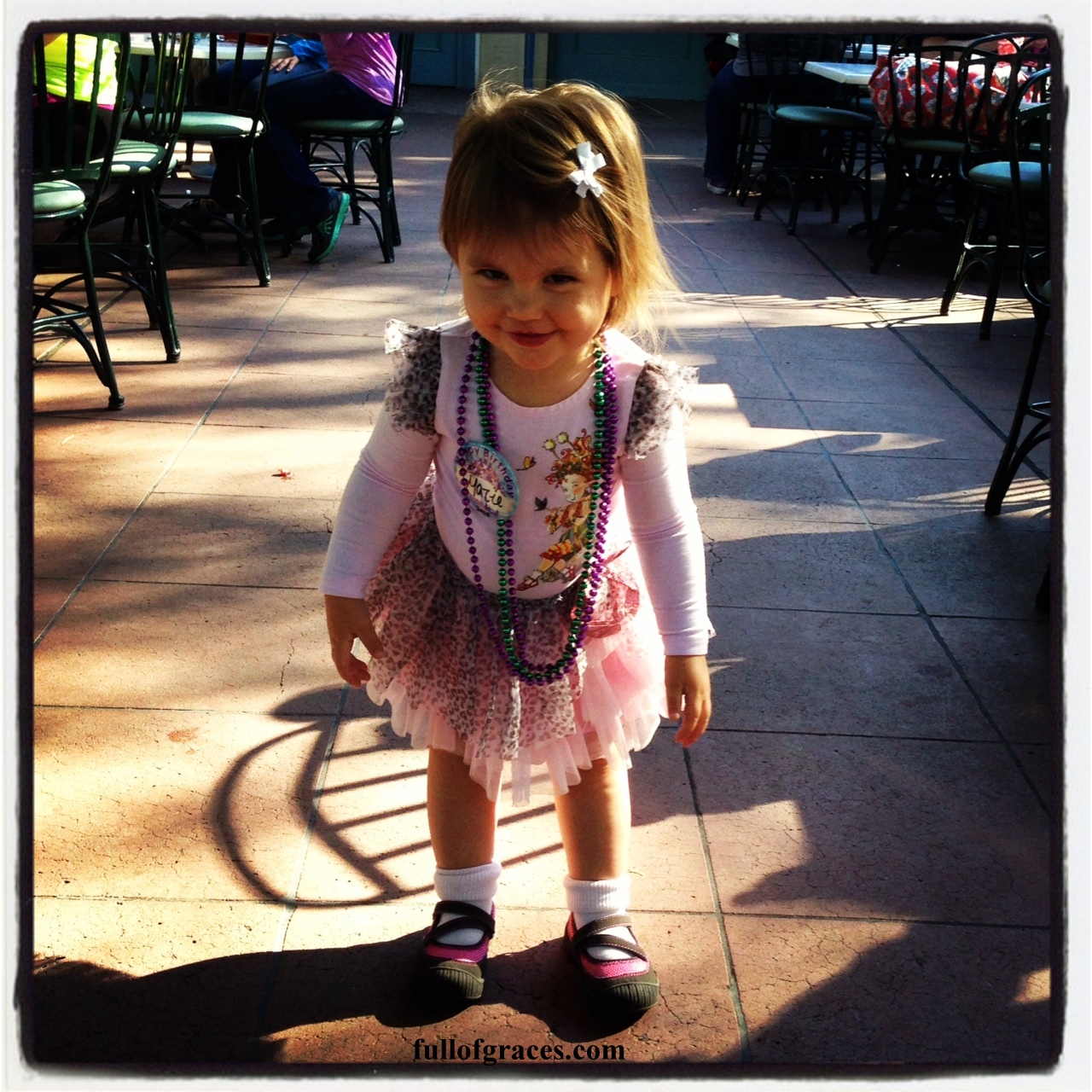 Mazie at the French Market on her birthday this year. The jazz band throws beads to little ones, which is a little touch of Disney Magic that I love.